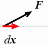 質点に力Fが働いて、位置が微少変化した(x→x+dx)